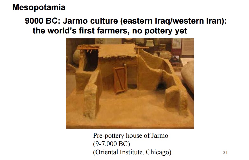 کەسانێ هەن ، گومانیان لە ئەوە هەیە ، گوندی ( چەرمۆ)، نموونەی یەکەمین کشتوکاڵ بێ و لەوانەیە ، لە رووی شارستانییەوە ، لەسەردەمەکانی دوایی چاخی بەردینی کۆتایی ، پێگەیەکی سەروەریی دوایی بووبێ . لەوانە : ( ١٩٥٢ ، Chilad) پێی وایە ، گردی ( حەسوونە) ، لە باکووری ( عێراق) لە چینەکانی یەکەمی سەرەوەی دایە ، نموونەی یەکەمین کشتوکاڵە.