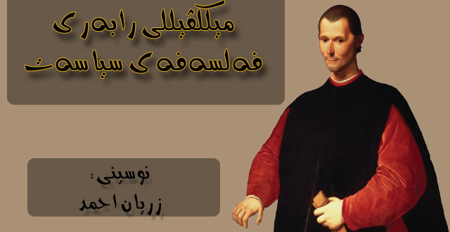 ماكیاڤیللی رابەری فەلسەفەی سیاسەت نوسینی : زریان احمد قوتابی ماستەر پێشەكی ماكیاڤیللی بە یەكێك لە دیارترین بیرمەندی سەردەمی بوژانەوە دادەنرێت . كە شاعیرو مێژوونوس و سیاسەت مەداربووە ,وە كاتێك سیستەمی كۆماری لە فلۆرەنسا هاتە كایەوە زۆر بە پەرۆش وبە دڵسۆزیەوە هاوكاری حكوومەتی فلۆرەنسای كردووە ,وە دە وڵەمەند یەكەی …
