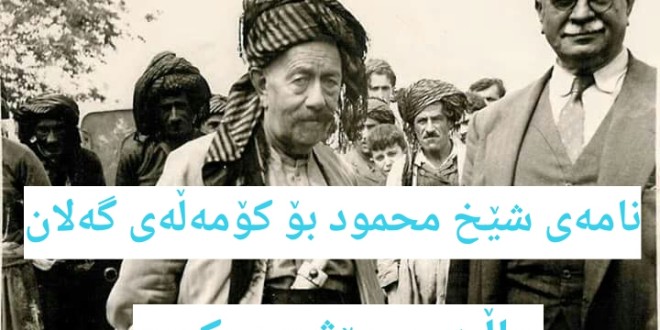 نامەی شێخ مەحمود بۆ سەرۆکی ئەنجومەنی{{ کۆمەڵەی گەلان}} عصبە الامم پاریس ٢١ مارس ١٩٣١ بەڕێز جەنابی سەرۆک شانازی ئەوەم هەیە ترس وشکاتی نەتەوەیەکتان پێ ڕابگەیەنم کە خودی خۆتان خستوتانەتە ژیر ئینتداب وپاراستنی خۆتانەوە و دەشگوترێ ئەوەی ئینتداب دەکات، پارێزەریشە. ئەم نەتەوەیە نەتەوەی کوردە کە من زۆر شانازی بەوەوە دەکەم بە …