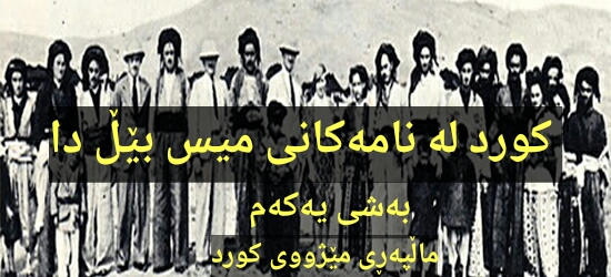 كــــورد لــەنـامـەكـانـی ״مـیـس بـێـڵ״ دا خــوێـنـەری بـەڕێــز: خاتوو گێرتروود بێڵ، كە بە میس بێڵیان خاتوونی بەغدا ناسرابوو، كەسێكی وریا و بلیمەت و شارەزای وڵاتانی دوورگەی عەرەب و عێراق بوو، عەرەبی و فارسی بە چاكی دەزانی و ساڵی 1917 لەگەڵ سوپای بەریتانیادا هاتبووە عێراق و سكرتێری كۆمیسیاری باڵا و بڕیار …