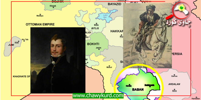 میری بابان لەنێوان عوسمانی و ئێرانیدا گیری خواردووە، لەلایەک فارسەکان داوای باجی لێ دەکەن و لەلایەکی تر، تورکەکان قەبوڵ ناکەن ئەو باج بە ئێرانییەکان بدات دۆسیە: کورد لە چاوی ئەواندا ئەوڕەحمان پاشا دەیویست میرنشینییەکەی خۆی لەژێر دەسەڵاتی عوسمانی و میرنشینییەکانی دەوروبەر دەربهێنێت کلاودیۆس جەیمس ڕیچ ساڵی ١٨٠٨ وەک لێپرسراوی کۆمپانیای …