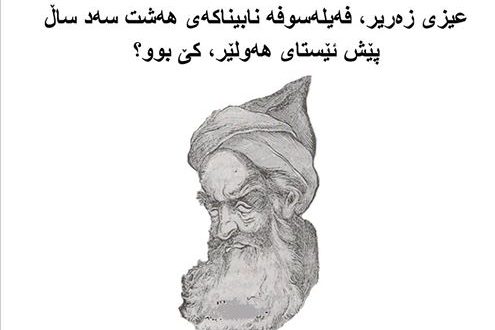 عیزی زەریر، فەیلەسوفە نابیناکەی هەشت سەد ساڵ پێش ئێستای هەولێر، کێ بوو؟ نووسینی: سۆران حەمەڕەش هەندێک جار کە لەگەڵ هاوزمانێکتدا باس لە فەرهەنگ و مێژووی کورد دەکەیت، بە گشتی لە ژێر کاریگەریی میدیای عەرەبی و فارسی و تورکیدا، دەستبەجێ شتێکی چاوەروانکراو دەگووترێت؛ “کورد قەت هیچی نەبووە”. بە دڵنیایی سەد ساڵ …